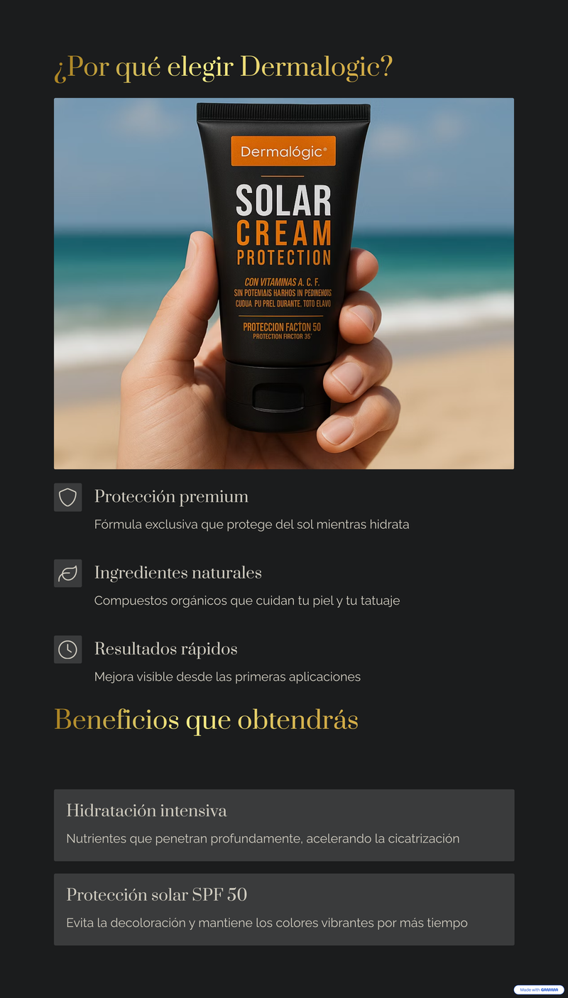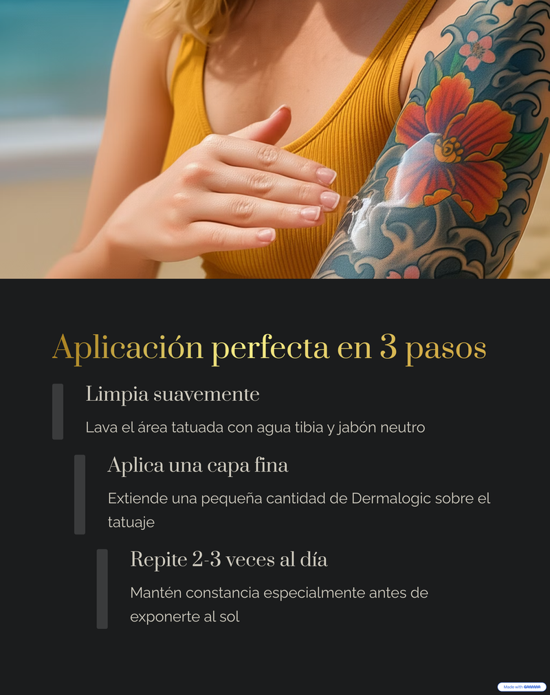 • Prevenir la decoloración: Protege los pigmentos del tatuaje de los efectos nocivos del sol.
